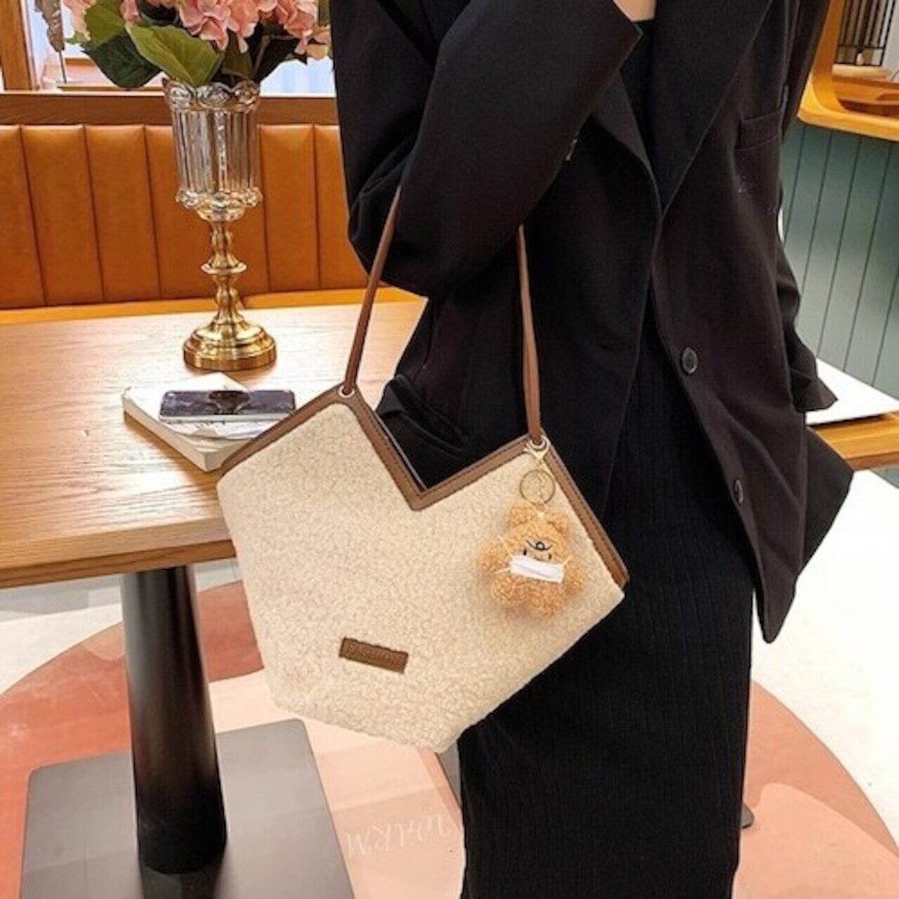 ボアトートバッグ ショルダーバッグ カジュアル ガーリー E675